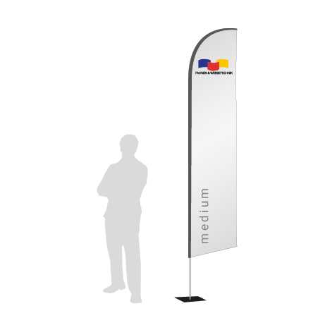 Die Beachflag Wind Medium von Fahnen & Werbetechnik Staeb in Freiburg, Lörrach und Offenburg ist in ihrer Form besonders witterungsbeständig und daher auch für windigere Bereiche hervorragend geeignet. Somit ist sie die ideale Flagge für Außenbereiche, aber auch in Innenbereichen zieht sie die Blicke der Passanten auf sich. Deshalb kann sie optimal als Wegweiser oder zur Kommunikation von Botschaften genutzt werden, beispielsweise auf Messen und Events, bei Produktvorstellungen oder Geschäftseröffnungen. Aber auch als dauerhafter Werbeträger vor Autowerkstätten, an Ständen in der Fußgängerzone oder als Außenwerbung vor dem Einzelhandel ist sie dank ihrer Stabilität bestens geeignet.
